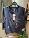 海軍藍刺繡撞色袖口長袖上衣